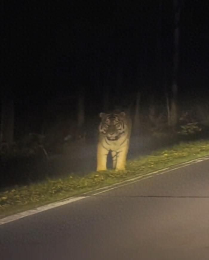 而就在本周10月14日,据新京报报道,有网民发视频称吉林珲春一村道出现一只野生东北虎。记者核实获悉,事发地位于杨泡满族乡。公开资料显示,该乡属于东北虎豹国家公园保护区范围,常见虎豹等动物。15日杨泡满族乡政府工作人员告诉记者,暂未发现老虎行踪,不排除已回山林,当地已提醒居民注意安全,暂无人员受伤报告。